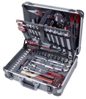 Jste údržbář, pracujete v průmyslu a nebo v autooprávarenství? Pak je tento kufr pro vás to pravé. Tento hliníkový kufr s robustní konstrukci překvapí nejen svou kvalitou a množstvím nářadí, ale hlavně svými rozměry 455 x 340 x 160 mm. Konstrukce kufru má vyztužené rohy odolné proti nárazům a vevnitř je vypolstrován. Souprava nářadí (gola sada 1/4" 1/2") je uložena v pevném plastovém výlisku. Díky příznivé ceně, je tento kufr i pro ty zákazníky, kteří hledají kvalitní nářadí za přijatelnou cenu.