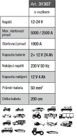 Profesionální startovací zdroj s pojezdem 12 - 24V 24Ah 1900/5000A.