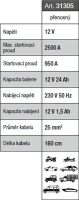 Přenosný profesionální startovací zdroj v nárazuvzdorném ABS krytu 12V 24Ah / 2500A. Zdroj dodáváme včetně kabelu s adaptérem pro připojení do zásuvky auto zapalovače. Výhodou je extra dlouhý kabel 160 cm.