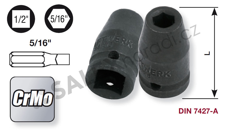 Úderový adaptér 1/2" na bit 5/16" určen pro úderové utahováky.