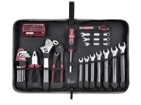 Univerzální sada nářadí. Tento 57-dílný set vám poskytne mnoho nářadí, které se bude hodit pro opravy a šroubovací práce v domácnosti či dílně. Sada je uložena v praktické, skládací tašce se zipem, která usnadňuje přepravu a skladování. Nástroje jsou upevněny ve smyčkách a kapsách, takže jsou vždy po ruce a snadno se najdou.