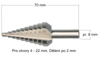 Stupňovitý vrták pro otvory 4 - 22mm po 2 mm.