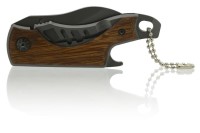 Tento drobný zavírací nůž je ideálním pomocníkem pro camping, rybaření a další outdoorové aktivity. Čepel je vyrobená z kvalitní nožířské oceli SS420 a její tvrdost je HRC50-52. Čepel o délce 5,5 cm a tloušťce 2,5 mm je opatřena šedým povrchem. Díky výstupku na čepeli lze nůž snadno otevřít jednou rukou. Nůž je vybaven pojistkou, která se ovládá bočním posuvem palce ve spodní části rukojeti. Střenky rukojeti dokonale imitují dřevo a mají atraktivní perforaci, což zajišťuje pohodlné držení a estetický vzhled. Zadní strana nože je vybavena otvírákem na lahve a klínkem pro rozbití ořechů. Tento praktický a stylový nůž bude skvělým doplňkem vaší outdoorové výbavy.